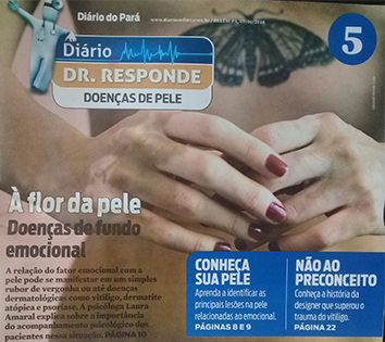 Na edição do Jornal Diário do Pará, 07/06, a psicóloga Laura Amaral (CRP10/04142) foi entrevistada por Cintia Magno, na Reportagem "Entrevista com especialista - a Psicologia faz parte do tratamento", exibida no Caderno especial "Emoções à flor da pele".